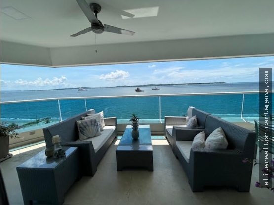 CARACTERISTICAS. APTO DE 3 ALCOBAS CADA UNA CON SU BAÑO, DOS ALCOBAS CON VESTIER, ESTAR DE ALCOBAS, BAÑO AUXILIAR, DOS SALAS, COMEDOR, AMPLIO BALCON CON VISTA DE PRIMERA LINEA AL MAR,COCINA CON ISLA CENTRAL , ZONA DE LABORES, CUARTO Y BAÑO DEL SERVICIO.